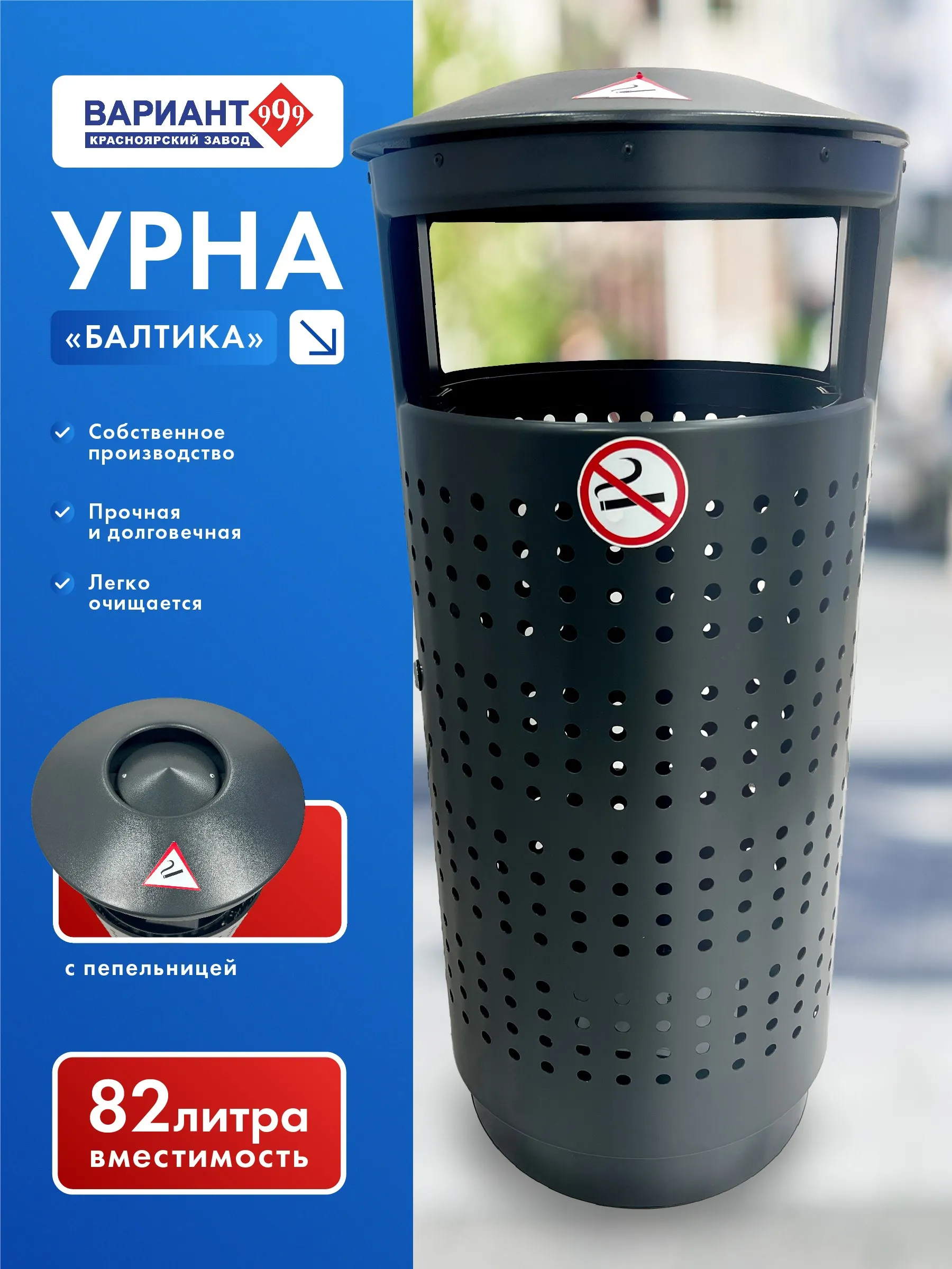 Урна "Балтика" идеально подходит для установки в парках, скверах, на площадях и улицах городов. Прочная стальная конструкция урны обеспечивает её долговечность и устойчивость к внешним воздействиям, что делает её надёжным решением для любых условий эксплуатации.
