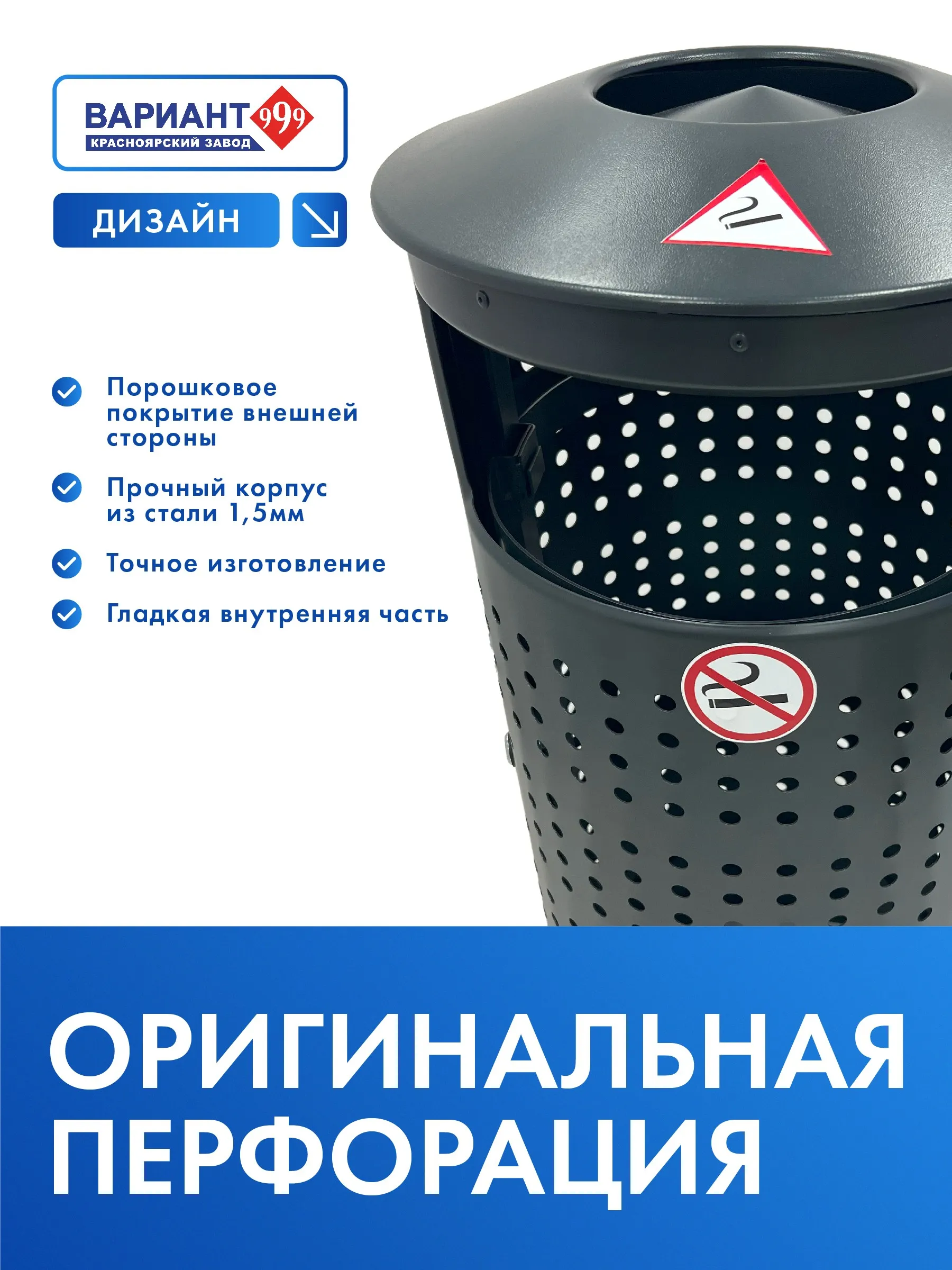 Урна цилиндрическая "Балтика" с перфорацией – это стильное и функциональное решение для сбора мусора на улицах и в общественных местах. Её перфорированный дизайн не только придает урне современный вид, но и обеспечивает хорошую вентиляцию, что важно для предотвращения неприятных запахов и сохранения чистоты.